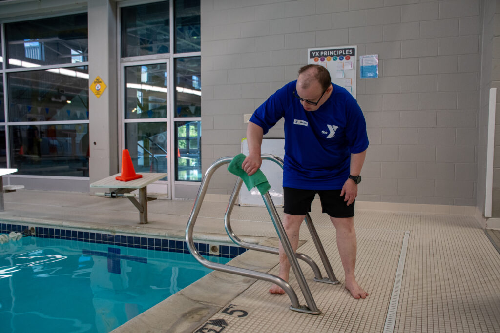 When you walk into the pool area at the Shady Grove YMCA, you might see Mark hard at work. He cleans the windows, checks the pool’s chemical levels, and makes sure the floor is safe and dry. But Mark is doing more than just his job – he’s also chasing a dream.